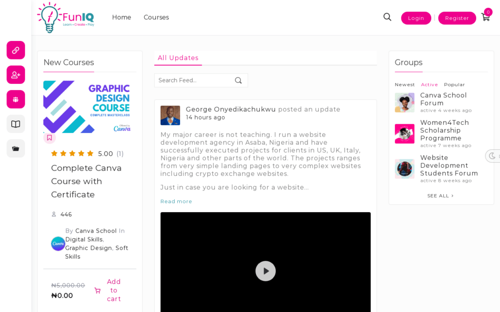 FunIQ Skills Academy is a growing platform and since its inception, we have been working hard to find what works for us and build on it. To enhance the features of the platform, we introduced FunIQ Social. With FunIQ Social, users can interact, post their minds, post job listings, join groups and engage in various other useful social networking activities which have been designed with education in mind.